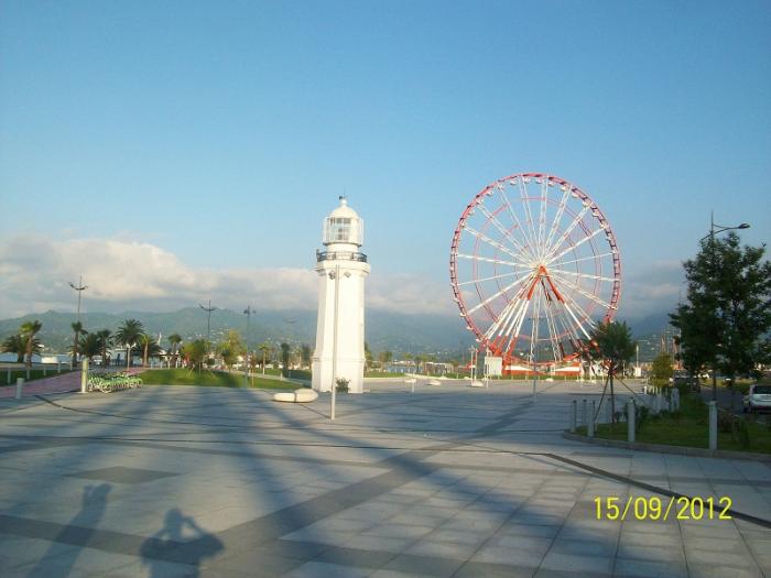 Заехали в город Батуми. Красивый город. Дороги в центре выложены из брусчатки. Очень много строек.