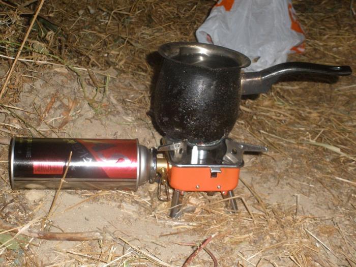 Такую вот горелку мы взяли с собой, очень удобно и быстро можно нагреть воду.