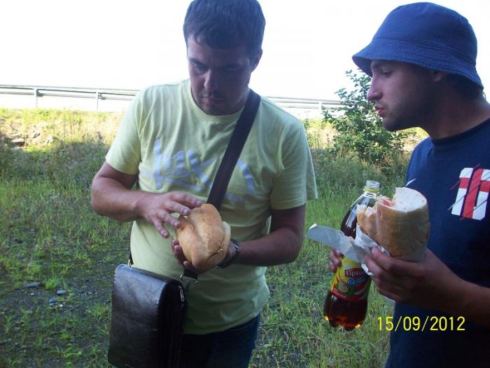 По дороге встретили частную пекарню, взяли немного свежего хлеба и решили остановиться перекусить.