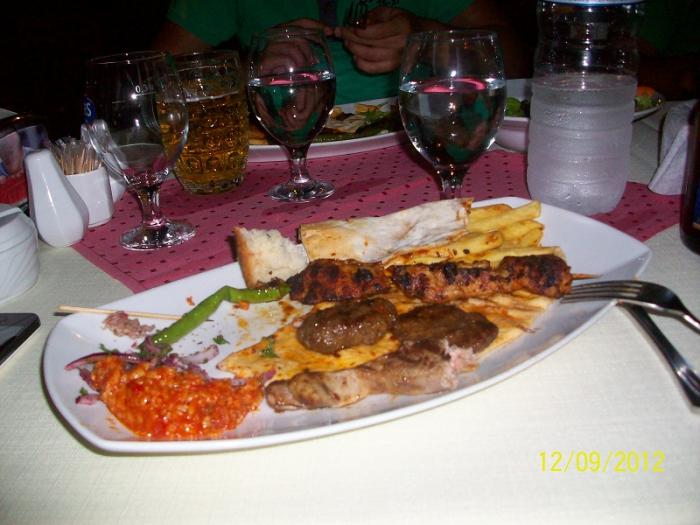 Зашли в местное кафе.Это кебаб микс который стоит 28TL(500 руб.) одна порция.