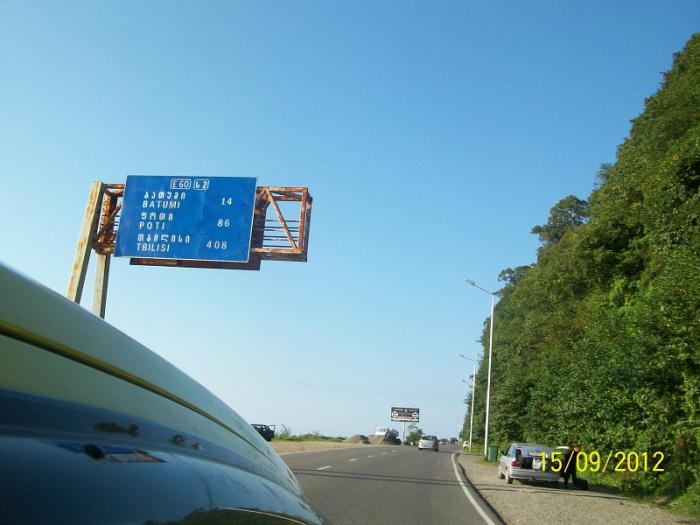 И вот мы в Грузии. Заехали с пустым баком, недалеко от границы была заправка. Цена на 92 бензин была около 2.3 лари ( 41 руб.).
