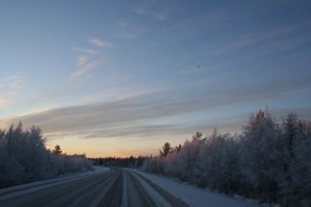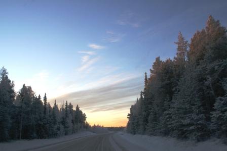По мере того, как мы приближались к точке назначения, стало понятно, что одной нашей мечте суждено сбыться: противные –1+1 градусов, упорно не пускающие зиму в Питер и преследующие нас по дороге в Суомуссалми, постепенно сменились на –10, а потом и вовсе на –28.