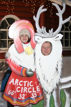 Если честно, была искренне удивлена, почему в канун Нового года не были организованы развлекательные программы на улице. Ехали за праздником, а в результате получилась прогулка по сувенирным лавкам. Фланируя туда-сюда, несколько раз пересекли линию полярного круга, символическое изображение которой висело над нашими головами.