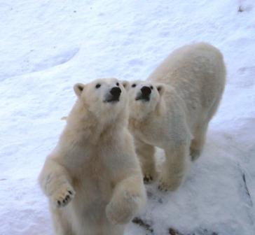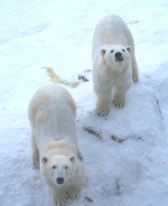 а возле офиса всех встречает добродушный белый медведь, который играет с детьми и со всеми фотографируется.