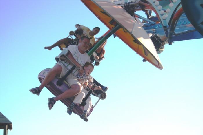 На одном из экстремальных аттракционов мы стали свидетелями забавной картинки. Развлечение состояло в том, что на приличную высоту поднималась скамья, которая сначала с большой скоростью крутилась как чёртово колесо, затем, не прекращая движения, начинала крутиться вокруг своей оси, после чего рывками останавливалась и вытряхивала сидящих – то вниз головой, то вниз спиной… и так несколько раз. Визг стоял неимоверный!!! Из нас никто не рискнул подвергнуть себя таким испытаниям – стояли и глазели. Очередная партия «камикадзе» выглядела не совсем обычно — значительную часть группы составляли женщины востока с ног до головы, облачённые в чёрные одежды. Они смиренно уселись на скамью, а их мужчина водрузил себя на скамеечку перед аттракционом, положив ногу на ногу и скрестив руки на груди. С улыбкой на лице он наблюдал, как его женщин крутило и трясло как в шейкере, а они ни разу не крикнули – терпели всё молча. Аттракцион остановился, они тихонько вышли и последовали за ним дальше.