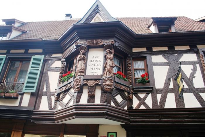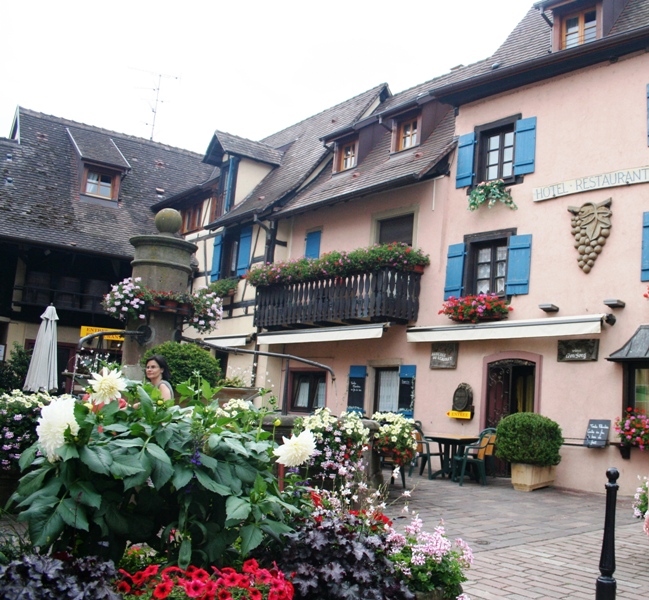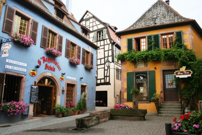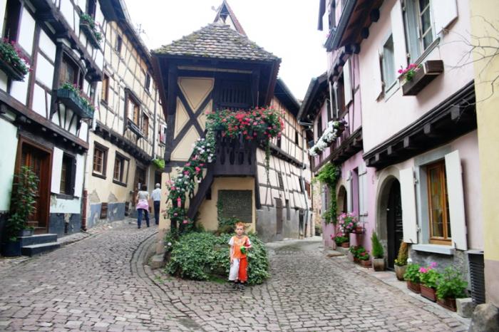 Город Эгисем (Eguisheim), построенный вокруг замка VIII в, не может никого оставить равнодушным — узкие улочки и обилие цветов, украшающих средневековые фахверковые и ренессансные дома из песчаника – они тут и жёлтые, и розовые, и сиреневые, и с бочковатыми стенами, и даже треугольные.