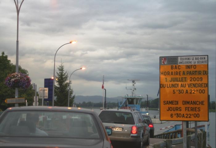 с прошлогодним, которое считали идеальным. Начали в шутку перечислять признаки удачной поездки: «Что ж, состоялось всё, как прошлым летом — горные серпантины, замечательный экспромт и даже преодоление ступенек в пещере, осталось только проехаться на паровозе по склону горы и случайно оказаться на паромной переправе». Наш смех прервал голос из навигатора: «Через 250метров въезд на паром, затем (пауза) покидаем паром». От неожиданности Тарас, даже, слегка притормозил – какой паром? Где паром?! Через пару минут мы оказались на берегу реки, въехали на паром, который за пять минут, совершив разворот от берега к берегу, доставил нас из Франции в Германию. Управляли этим «чудом техники» наши соотечественники.