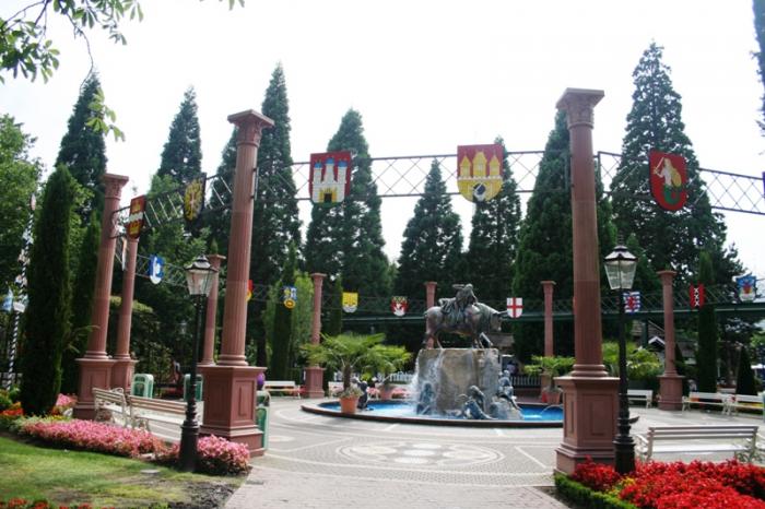 В греческой части находится аттракцион «Посейдон», где посетители несутся в гондоле по водной горке с высоты 850метров. В Испании можно увидеть рыцарские турниры и фламенко, в Италии Колизей и Венецианский карнавал. В общем, всего не перечесть. Если говорить языком справочника, то: «в арсенале парка около 100 тематических аттракционов и разнообразных шоу, в программах участвуют примерно 150 артистов из 22 стран. Здесь идут театрализованные представления, проводятся конференции, почти каждые день снимаются телевизионные передачи. На территории парка можно сделать оригинальные покупки, здесь расположено около 50 торговых павильонов и множество кафе и ресторанов».
