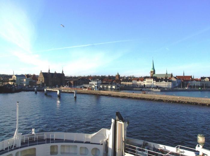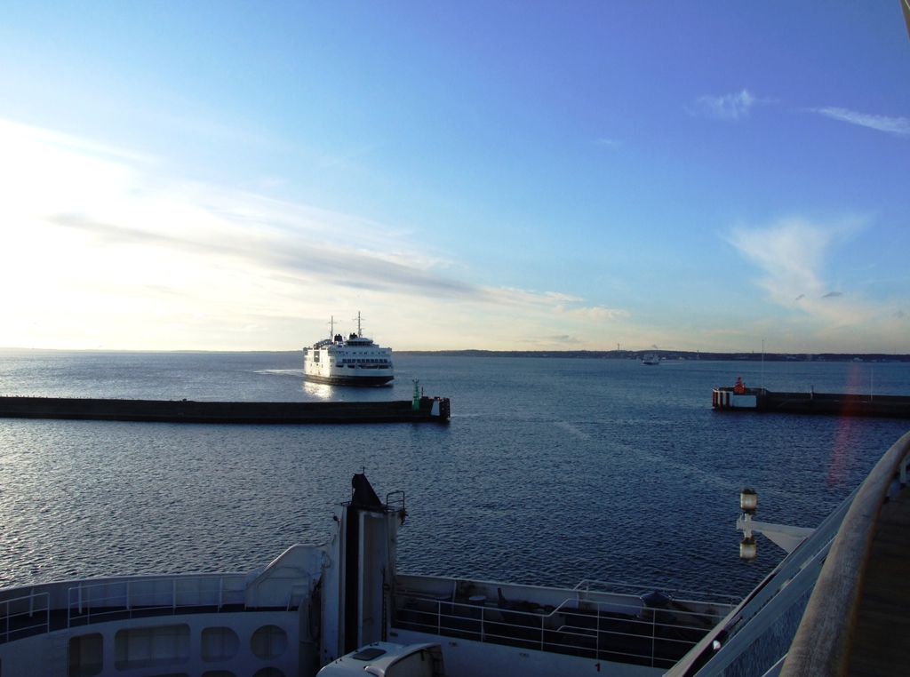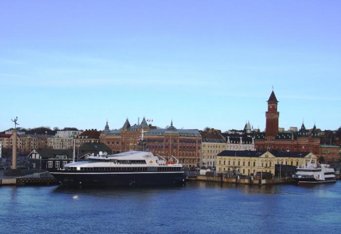 Переправляясь через пролив Эресунн, запечатлели знаменитый замок Кронборг и очертания города Хельсингёр.