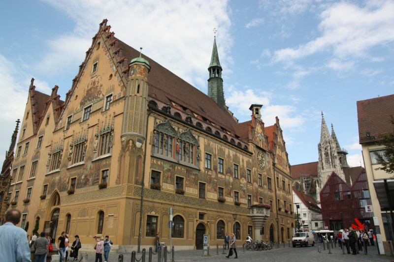 Фото 11. Здание ратуши в г. Ульм. На заднем плане собор на Мюнстерплатц.