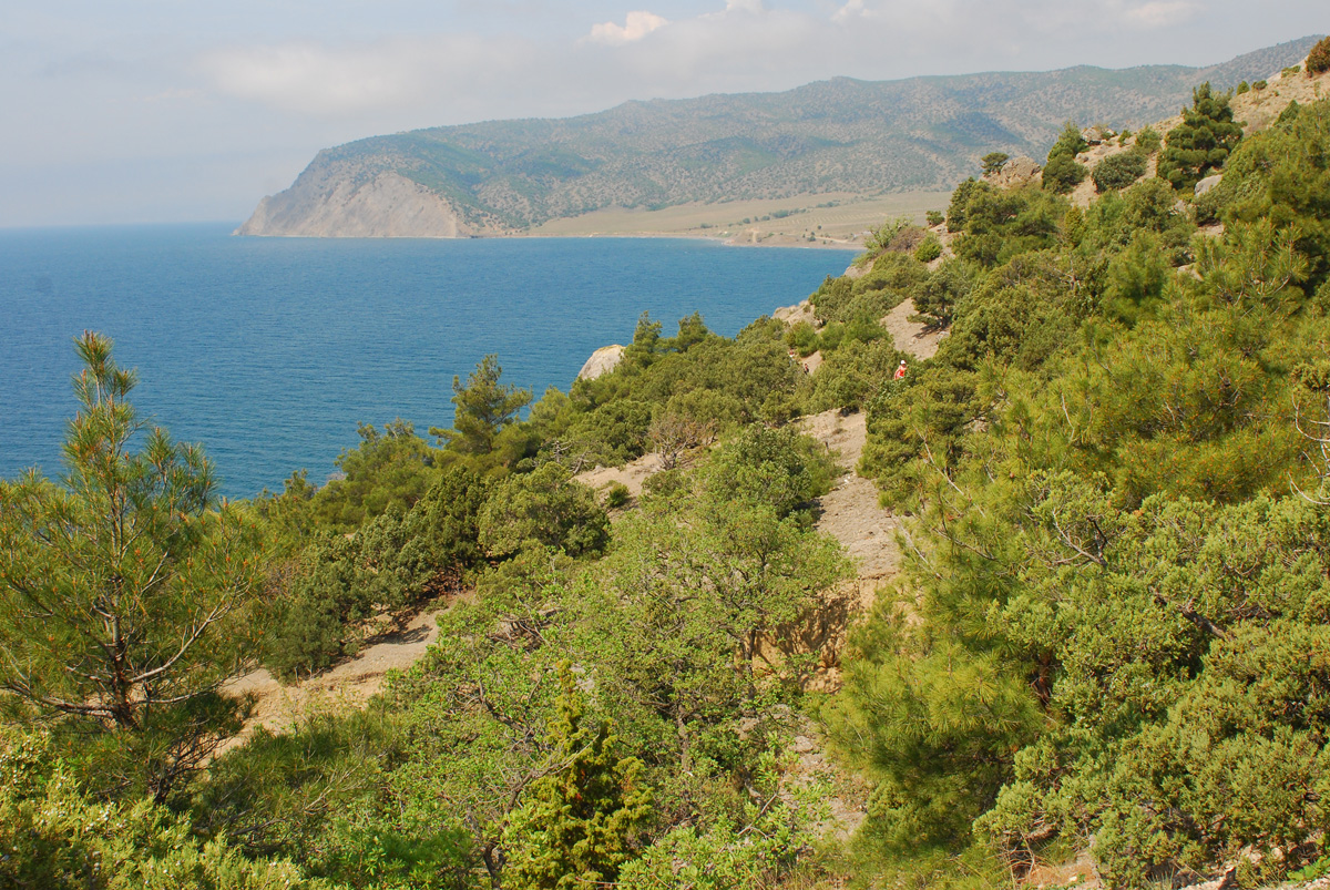 Решили соверщить пешую прогулку по природному заповеднику, взяли катер от Нового Света до пос. Веселое (по 40 гривен с человека), а оттуда по тропам пошли обратно в сторону Царского пляжа. Природа и открывающиеся виды прекрасны! На жаре воздух пропитан запахом можжевельника. Солнце жарило нещадно, поэтому все мы к вечеру были красные как варёные раки. Но до этого был Царский пляж, предварительно закупленная продукция Новосветского завода шампанских вин и море…