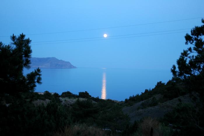 Из Симферополя выдвигаемся в Новый Свет. Ехать чуть больше 100 километров, в основном по петляющим между гор дорожкам. В Новый Свет приехали уже в сумерках, зато на последнем участке серпантина, уже после Судака вдоволь налюбовались на восходящую полную луну. Вид с высоты серпантина на море и луну великолепный!