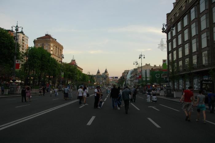 От границы до Киева 200км. Погода шикарнейшая! Заселяемся в гостиницу в пятиста метрах от Крещатика и идем гулять по вечернему Киеву. Крещатик, кстати, по выходным и праздникам перекрывают и делают пешеходным. Он чем-то напоминает одновременно и Арбат, и Моховую в Москве.