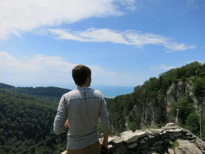 Утро в Сочи «порадовало» нас своей погодой, поэтому ни о каком купании в море мы даже не подумали. Решили поехать посмотреть Орлиные скалы (они же Белые скалы) и Агурские водопады. Благо оказалось это всего в пределах 10 км езды от нашей гостиницы.