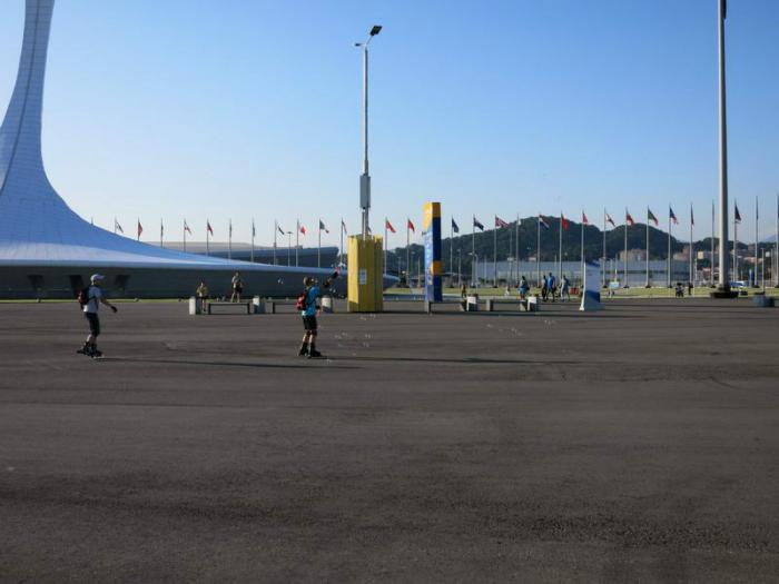 Посетив эти замечательные места, поехали назад в гостиницу, переоделись в чистую одежду, пообедали и поехали в Олимпийский парк. Хотели, правда, съездить еще и на Красную Поляну, но потом поняли, что времени на ее посещение уже не хватит, да и были мы там когда-то.