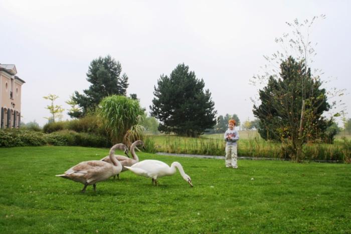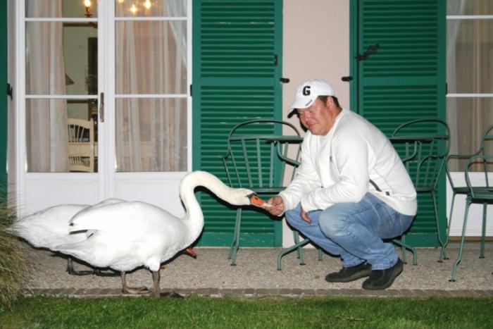 Как только мы приступили к вечернему кофе, стук повторился. Каково же было наше удивление, когда за плотной шторой мы обнаружили французское окно, ведущее в патио – там-то мы и обнаружили тех, кто так настойчиво просился к нам в гости. И этот вечер, и все последующие дни мы провели в компании лебедей, уток и рыжего кота, который появлялся каждый раз, когда из наших апартаментов доносился запах мяса или рыбы. Вели они себя крайне вежливо и достойно, ни разу не позволив себе переступить порог апартаментов и, тем более попрошайничать.