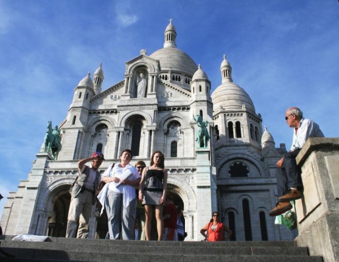 Экскурсия второго дня была посвящена достопримечательностям Правого берега. Первым делом отправились на Монмартр, где нам повезло с первой минуты – прибыв на место, буквально «упёрлись носом» в парковку, которая оказалась нужной высоты и со свободными местами. Уже безо всякого удивления оставили ключи от машины парковщику и пошли к базилике Сакре-Кер.