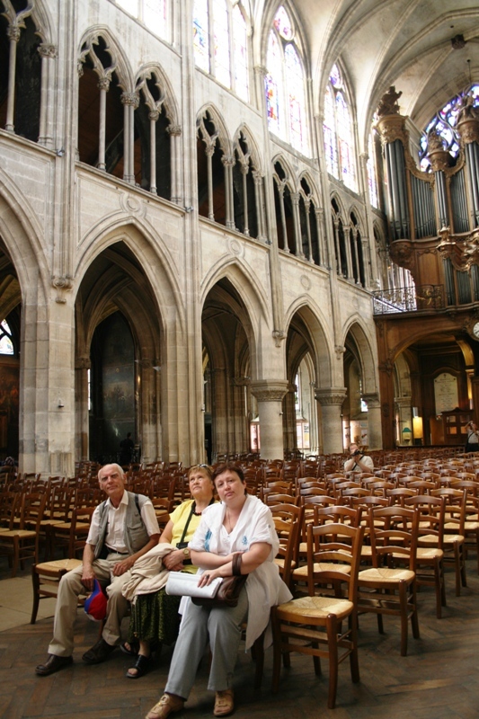 С интересом осмотрели церковь Сен-Северен XIII века. Не буду перегружать рассказ её историей, приведу только несколько строк из Интернет источника: «Чтобы хорошо представить себе «пламенеющую готику», лучшего объекта, чем церковь Сен-Северен, не найти. Достаточно взглянуть на её полурозетку, в которой вы найдёте вместо привычных лепестков — языки пламени. Сразу становится ясно, почему стиль был так назван».
