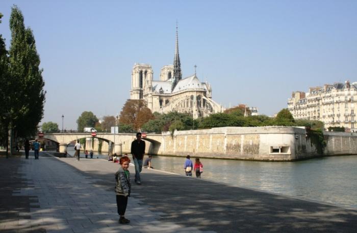 Во второй половине дня планировалось совершить небольшую обзорную поездку по центральным улицам правобережного Парижа, затем спешиться и продолжить знакомство с городом, сначала гуляя по саду Тюильри, а после короткого переезда — по острову Сен-Луи. Ознакомившись с достопримечательностями, заглянуть в кафе Bertillon, чтобы полакомиться изысканными десертами и необыкновенно вкусным мороженым. С острова Сен-Луи по мосту перейти на остров Сите, погулять вокруг и зайти в Собор Парижской Богоматери, после чего мимо здания Префектуры полиции дойти до Дворца Правосудия, Капеллы и Консьержери. Посмотрев на отдыхающую в сторонке часть семьи, я поняла и почувствовала, что эти «наполеоновские планы» придётся отложить — после вчерашних походов и сегодняшней затянувшейся утренней прогулки, им будет тяжеловато. Нет, выдержать-то они выдержат, но из-за переутомления должных впечатлений не будет. Поделилась с семьёй предложением ограничиться автомобильной обзорной экскурсией и, хотя все были преисполнены решимости топать ножками по Парижу и дальше, согласились с превеликой радостью:))