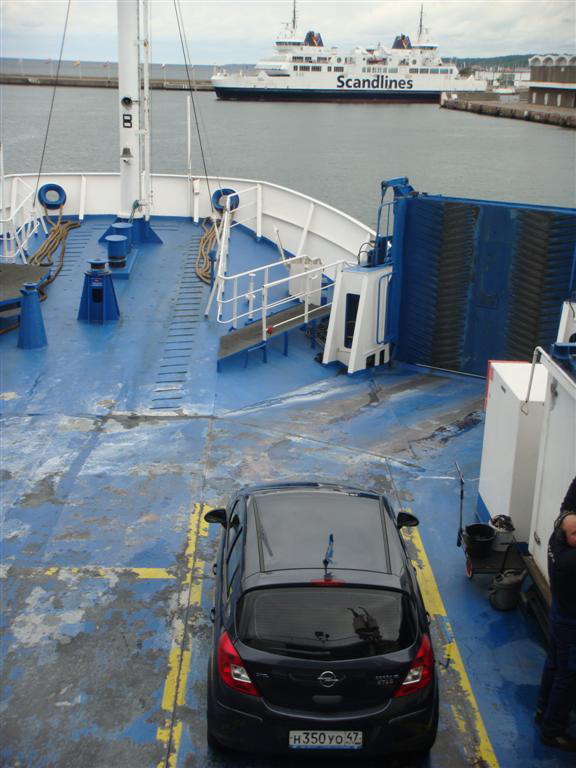 В этот раз мы тоже ждали чего то подобного, и вот. Еще в агентстве нам говорили, когда ставите машину на пароме запомните название дэки, где выход, чтоб быстро ее найти. На пароме до Стокгольма, мы этому придали большое значение, и все прошло хорошо. На маленьком паромчике Швеция-Дания все машины стояли на улице, поэтому также проблем не возникло. А вот на пароме из Дании в Германию оно случилось. Мы поставили машину, вроде запомнили картинку над выходом. Но каков был наш ужас, когда мы стали подходить к берегу и все пошли в машины, мы ее не обнаружили. Мы стали как сумасшедшие бегать по этажам и искать машину. Хочу сказать ощущение не из приятных. Паром уже причалил, с минуты на минуты должна была начаться разгрузка, а мы как дураки бегаем среди машин. В итоге у кого то из нас хватило ума спуститься еще ниже ( вроде на 3 или 4 уровень) и там она стоит….