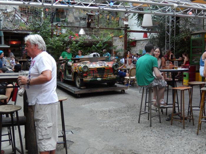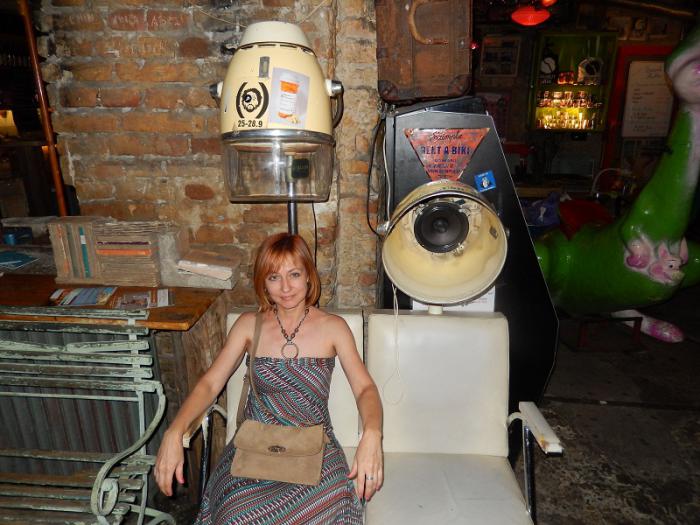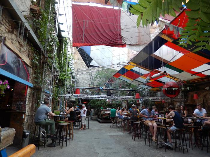 Возвращаясь в отель решили зайти в знаменитое заведение Szimpla Kert, оно находится прямо напротив нашего отеля. Это модная концепция «руин паб» в старых заброшенных дворах и домах. Очень своеобразное заведение, по ночам здесь очень шумно. Но днём интересно было выпить освежающий коктейль, побродить и поглазеть на раритетные вещи времен социализма…