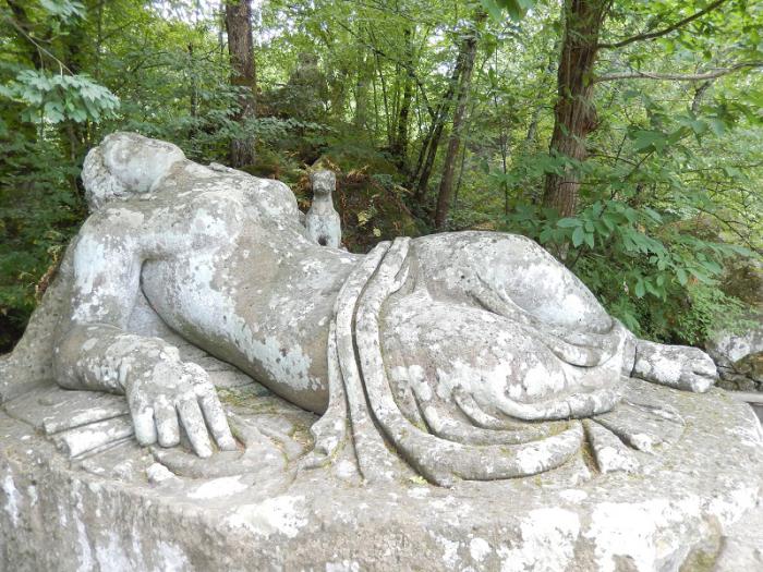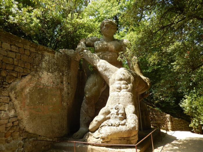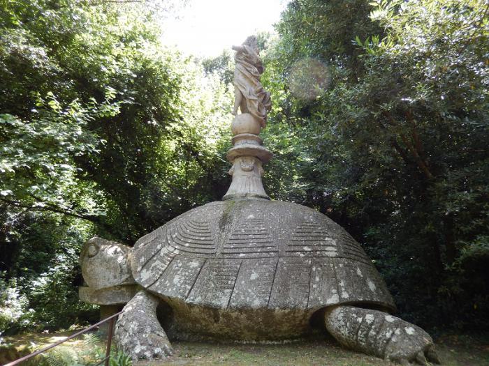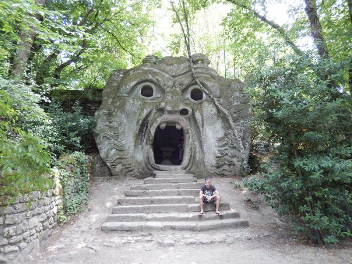 Этот парк был создан в ХVI веке архитекторами Дж.Бароци и Пирро Лигорио (тот самый, что достраивал Собор Святого Петра в Ватикане после смерти Микеланджело), а идея принадлежала принцу Пьеру Франческо Орсини. Франческо строил «Священный лес» в память о своей жене Джулии Фарнезе, которая трагически погибла. Название Сакро Боско (Священный лес) переводится как Чудесный лес наполненный чудесами. И действительно, здесь прямо из скал выточены огромные фигуры в основном мифологических персонажей, они как будто вырастают из самой земли. Зрелище – потрясающее.