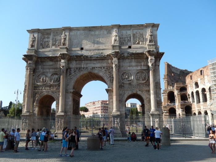Триумфальная арка Константина. Согласно легенде прямо перед решающим сражением с Максенцием Константину во сне был дан знак в виде креста. В бой Константин вооружился этим христианским символом и одержал победу. Уже в феврале 313 года официальной религией Римской империи признается христианство…