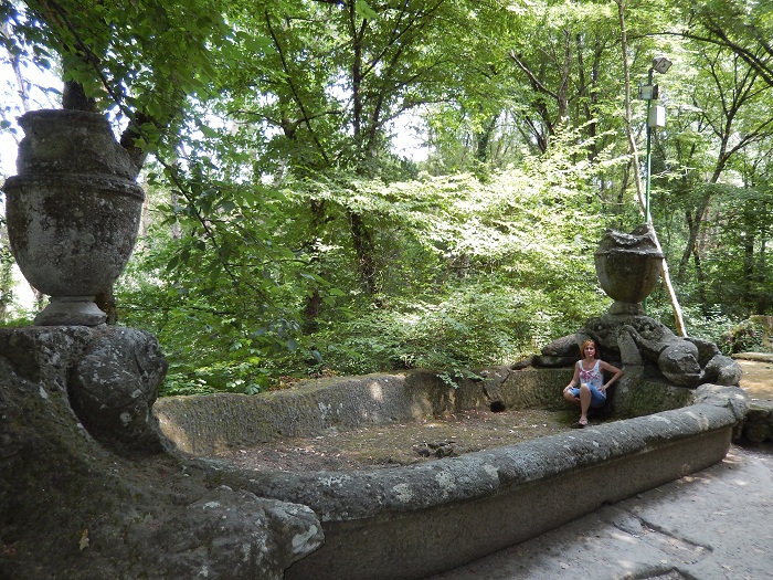 Если ехать по трассе А1, то не доезжая 100км до Рима есть съезд в городок Бомарцо в провинции Витербо. Там находится очень необычный парк — «Священный лес или парк монстров». Туда мы и направились. Стоимость билетов: взрослый -10 евро, детский- 8 евро.