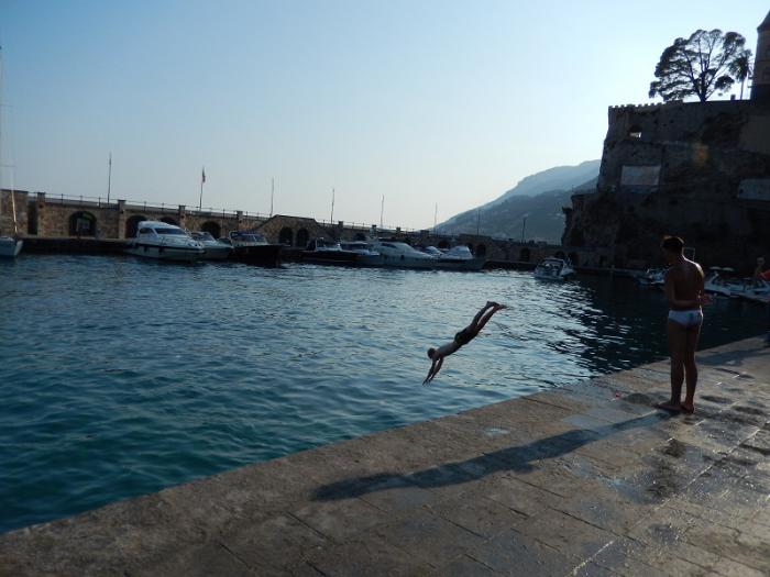 Здесь в Майори у нас был чисто пляжный отдых. Но и здесь мы решили сходить пешком в соседний городок Минори, он находится сразу за поворотом, за скалой на которой расположен ресторан «Замок Мирамаре»…