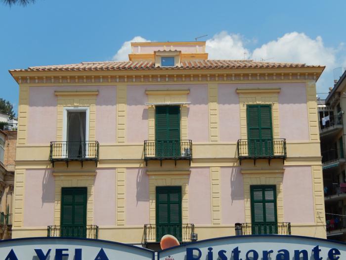 В Майори у нас был забронирован номер в (нашли на Hotels.com.) – 4 ночи, на четверых – 496 евро. И это ещё дёшево, на Booking.com предлагались более дорогие варианты. Апартаменты оказались очень симпатичными, в таком сине-лимонном стиле и с огромным балконом!..