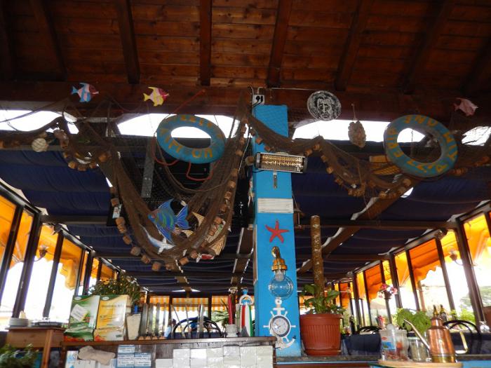 Поужинали в кафе рядом с нашим кемпингом. Милое такое кафе в морском стиле…