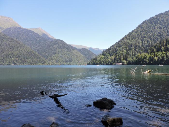 Обычный курортный поселок со всеми атрибутами, но народу меньше, чем в Краснодарском крае. Перенрчевав в Пицунде искупавшись с утра в чистейшем Черном море я направился в Рицинский национальный парк.
