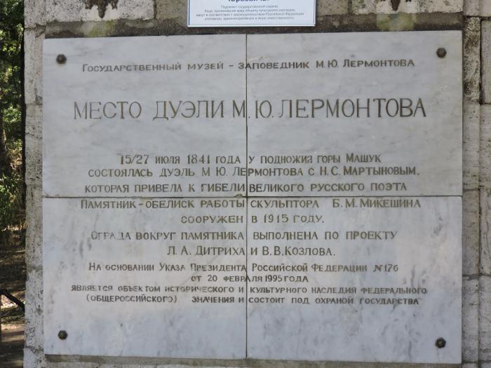 После всего я отправился в Пятигорск, где и заночевал. На следующий день я сходил в Краеведческий музей, осмотрел Кафедральный собор, знаменитый пятигорский провал- вонючее маленькое озеро внутри горы. Ходил по бродвею, где расположены по моему все кафе города Пятигорска. Посетил все Лермонтовские места: Грот Лермонтова, беседка Эолова арфа, дом где Лермонтов был вызван на дуэль.