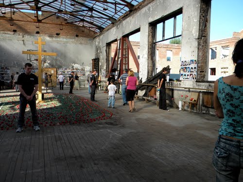 выбитыми стеклами и обгоревшими стенами, так и стоит посередине города как памятник, немое напоминание о произошедшем. На