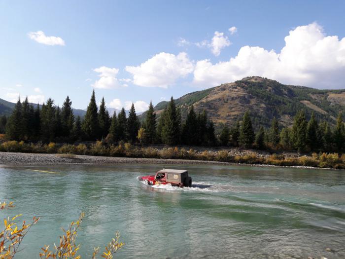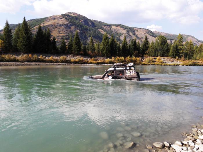 Коксу бродили по той же диагональной траектории, только теперь против течения. Чтобы избежать возможных неприятностей, легкого Рэнга зацепили на привязь из соединенных тросов и запустили его за высоким ТЛК Юрия. Песчаная коса на противоположном берегу позволила произвести длинный выкат первому автомобилю, что дало возможность держать трос в натянутом состоянии постоянно. Как и предполагалось, Рэнг слегка подвсплыл, но притянутый тросом без проблем выкарабкался на противоположный берег. Остальные машины переправились через реку самостоятельно.