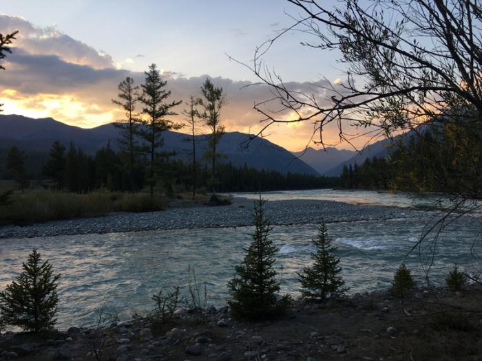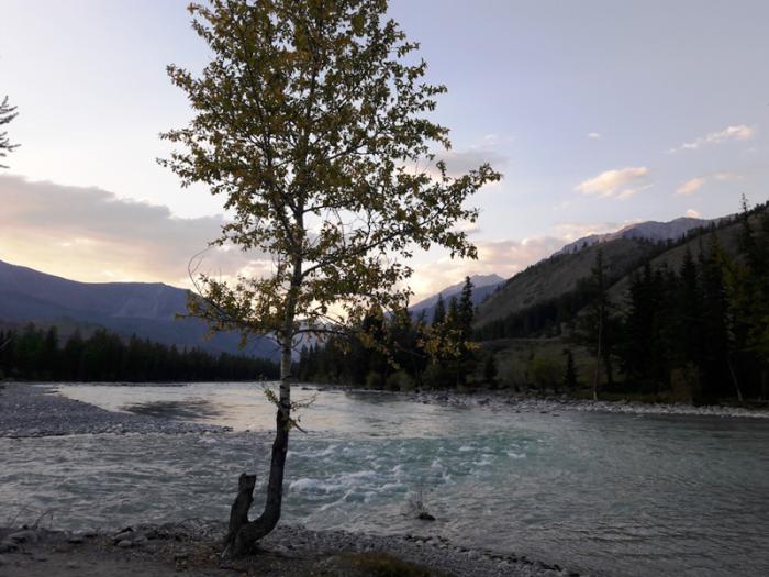 Очередное шикарное место ночевки. Воду для готовки брали в Коксу, купались в Аргуте, на укромной полянке, огороженной густыми зарослями кустарника.