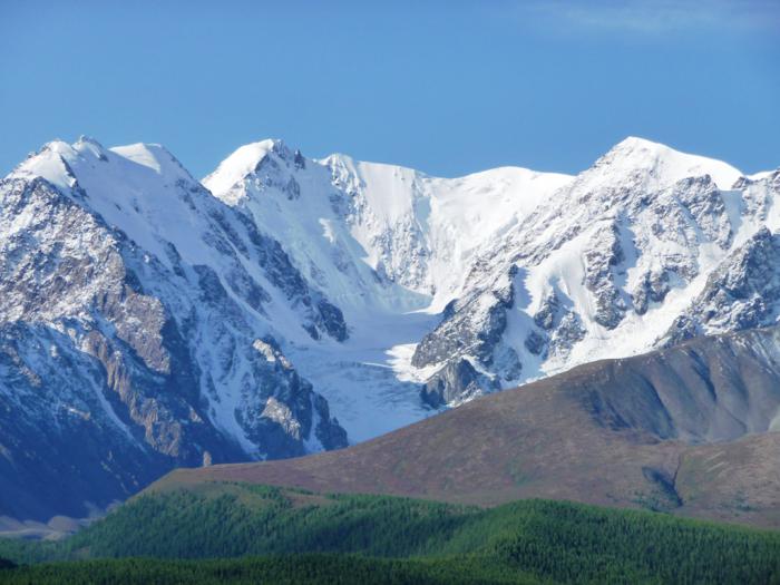 Зато, в итоге, успешно преодолев весь этот раскоряченный подъем, вкатываемся в долину Актру и очередной раз застываем пораженные грандиозностью, открывшейся перед нами картины.