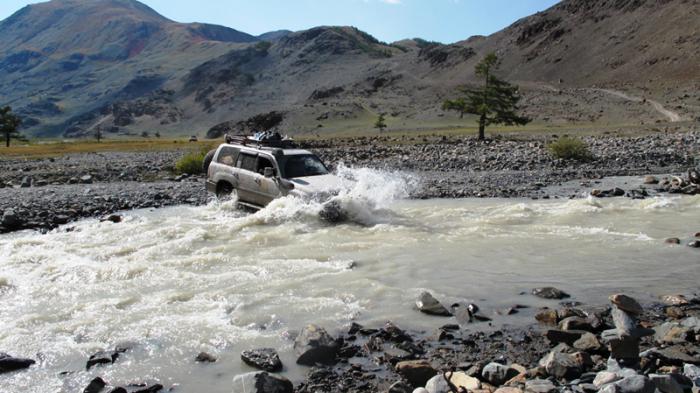 За Бельтиром встали на асфальт и уже у самого Чуйского тракта встретились с присоединяющимся к нам на пару дней экипажем Михаила Некрасова. Они доставили Володе новый генератор, Виктору тягу Панара. Ребята рвутся на природу, на раздолье, на свежий воздух, отдохнуть от городских будней и потому убегают вперед, к реке Коксу, где назавтра договариваемся встретиться, а мы заезжаем на ночевку и ремонт машин в большое районное село Кош-Агач.