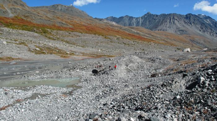 Утро началось с пешей прогулки к подножию ледника Большой Талдуринский. На территории российского Алтая это один из самых крупных ледников, толщина льда его, по подсчетам гляциологов составляет 175 метров. Берет свое начало от пикообразных вершин Ольга, Гребешок, Иикту и других.