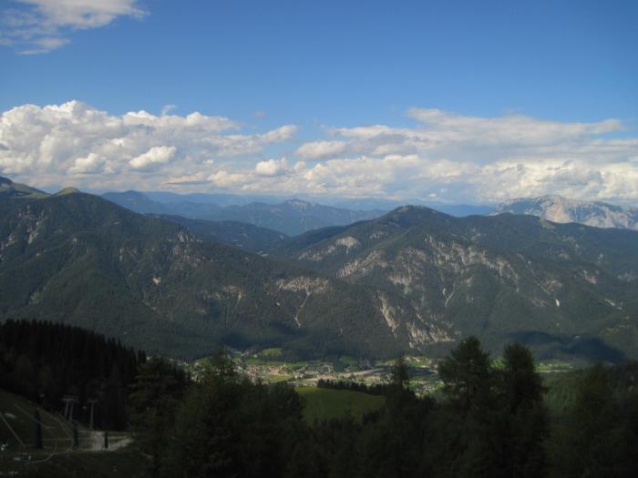 В пункте информации нам выдали бесплатные карты и отметили на них, что можно (на выбор) посмотреть за пару часов. Рекламировали какие-то озера и еще что-то, но под пунктом номер один значилась гора Lussari, а горное озеро у нас и «дома», в Австрии то есть, имеется.