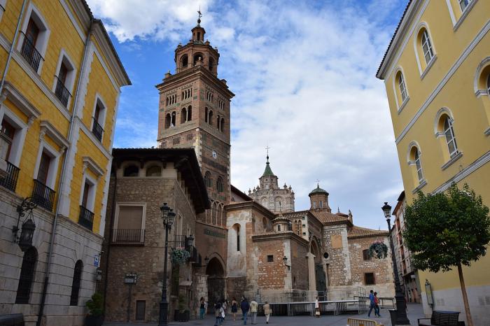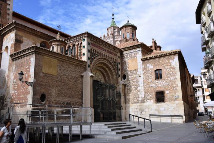 Собор Санта-Мария начали строить на сотню лет раньше башни-колокольни. Забавно, что храм, который должен был стать символом утверждения христианства на землях Арагона, поручили строить тем самым побеждённым маврам-мудехарам. Видимо, потому, что сами победители никаким другим искусством, кроме истовой веры, пока ещё не владели. Оттого и получился собор весьма затейливым сооружением со множеством арабских деталей как в интерьерах, так и в экстерьере.