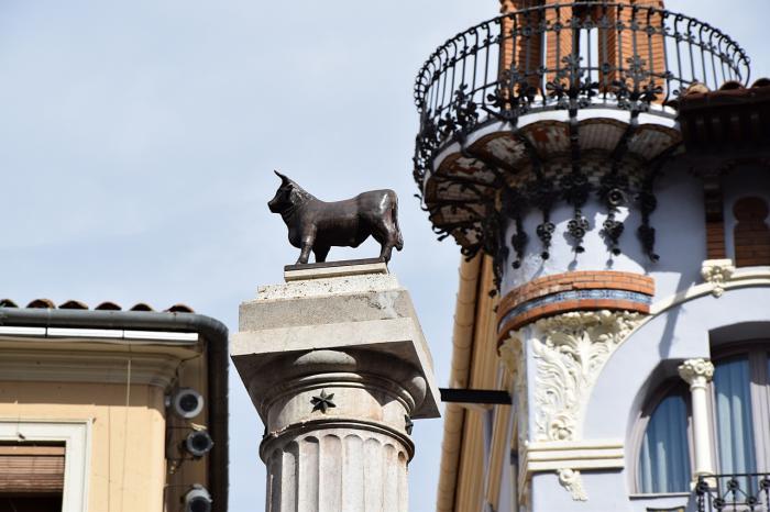 Кстати, названа площадь в честь бычка (торико) потому, что он является символом города. Но увековечен бычок не только в названии, но и в виде воздвигнутой на фонтан-постамент едва заметной фигуры. Представляю, если бы у нас возникла идея установить монумент зубру, какого здоровенного бычару мы бы в итоге получили в качестве символа.