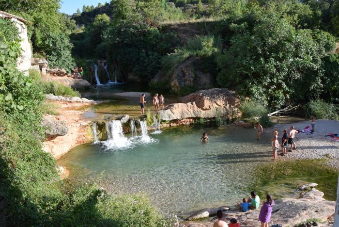 Эль-Паррисаль, где знакомая уже нам Матарранья преодолевает цепь из десятков водопадов и прудов. Мы сюда приехали, прежде всего, ради этого зрелища. Но увидеть парочку каскадов этой цепи, напоминающей Плитвичские озёра, с дороги практически невозможно. Поспособствовала осуществлению этой затеи удача в виде случайно найденного вышеупомянутого паркинга. Именно с него мы заметили нашу главную цель, к которой и направились. Знай я заранее более подробную информацию об Эль-Паррисале, возможно, и спланировал бы здесь утреннюю прогулку на пару часов.