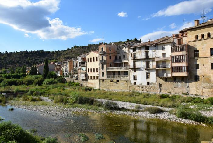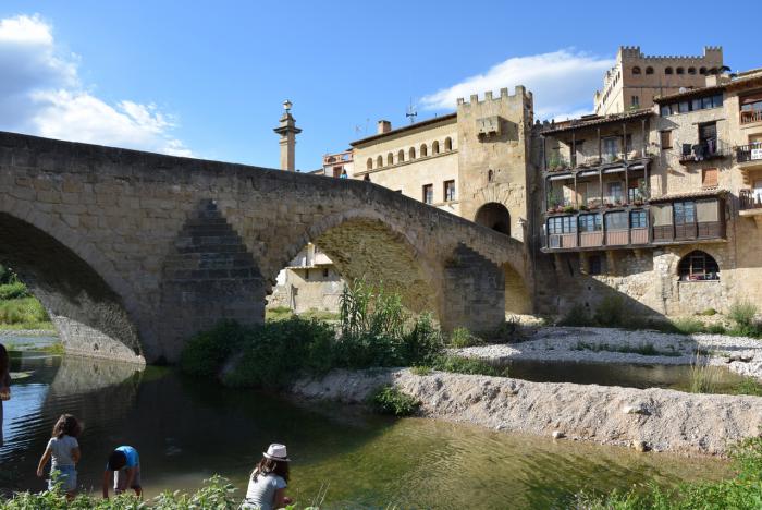 Вальдерробрес (Valderrobres) лежал на нашем пути, так что игнорировать его было бы глупо. Поэтому следуем по указателям в центр и в результате оказываемся на очень удобной стоянке, расположенной на берегу Матарраньи по соседству со средневековым мостом. Без иллюстраций всё это звучит довольно буднично. Но мы-то уже видим, что Вальдерробрес – это выстрел в десятку, поэтому сломя голову мчимся к основанию моста, чтобы сделать первый убийственный кадр с видом на деревню.