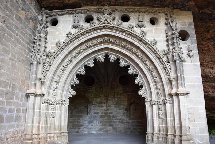 Перечисляя все три объекта своего пристального интереса в монастыре, я не претендую на некую оригинальность, так как подавляющее большинство посетителей именно с этими целями и посещают знаменитую обитель. И даже добавление к этому перечню ещё одного пункта – готического портала с великолепным растительным орнаментом, ведущего в капеллу св. Викториана, не делает мой интерес исключительным. Слишком уж всё очевидно в Королевском монастыре Сан-Хуан-де-ла-Пенья.