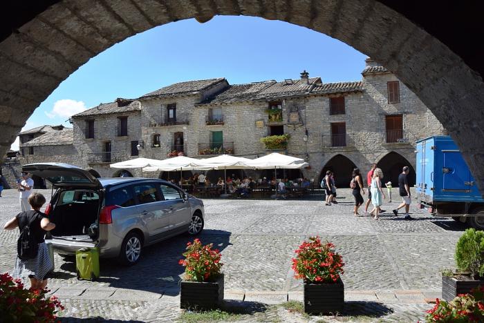 Айнса (Aínsa, L'Aínsa) встретила нас, я бы сказал, по-французски. Гостевой паркинг оказался безальтернативно платным. Это значит, что на въезде всех встречает специально обученное уполномоченное лицо, которое авансом взимает за постой фиксированную сумму, выдавая взамен карту городка. Конечно же, где-нибудь внизу можно поискать и бесплатную альтернативу, но времени это может занять не мало.