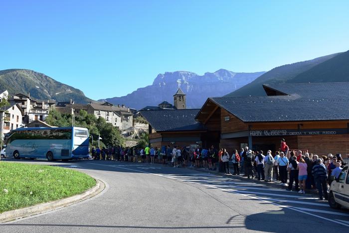 Природа этого явления стала нам понятна после посещения центра туристической информации. В «Национальном парке Ордеса и Монте Пердидо» проложено 22 туристических маршрута разной протяжённости и разной степени сложности. С утра пораньше автобусы забрасывают всех желающих прогуляться по лесам, горам и долинам в конечные точки этих маршрутов. А ближе к вечеру, или даже к обеду, они же собирают всех выживших/незаблудившихся и возвращают обратно.