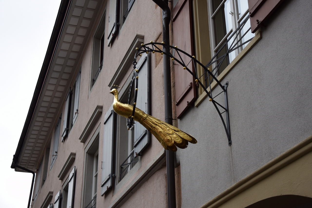 Всяки разны вывески здесь тоже скорее типично швейцарские – массивные и обильно позолоченные.