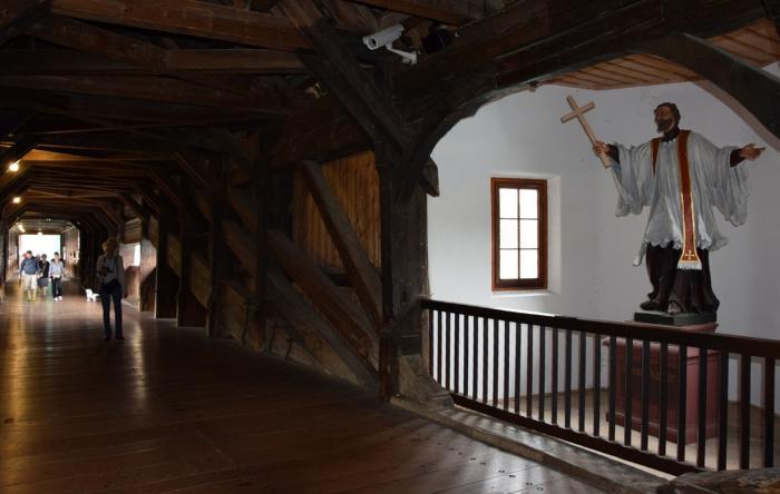 Но в «книгу рекордов» мост в Бад-Зёкингене всё-таки попал – в качестве самого длинного крытого деревянного моста Европы. Буквально на несколько десятков сантиметров опередив при этом всё тот же Капелльбрюкке. Пара сотен метров – ничто. Но не в случае с мостом через реку. Едва ли дойдя до его середины, мы решили, что с нас этого достаточно. Видимо, для среднестатистического средневекового гражданина это расстояние тоже казалось запредельным, поэтому строители и воздвигли в центре моста небольшую капеллу. Здесь можно помолившись попросить у всевышнего сил на преодоление оставшегося пути.