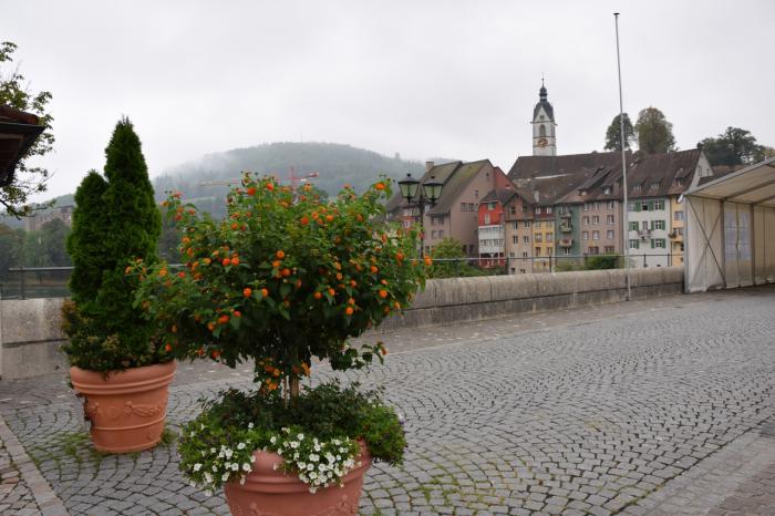 Далее у нас по плану курортный городок Бад-Зёкинген (Bad Säckingen), до которого десять минут езды от Лауфенбурга. Задерживаться здесь надолго я не планировал, поскольку хотел взглянуть лишь на мост через Рейн. Но сложилось иначе.